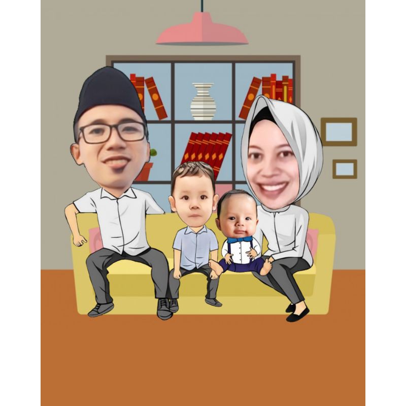 Gambar kartun keluarga dengan 2 anak laki laki tempat berbagi gambar.